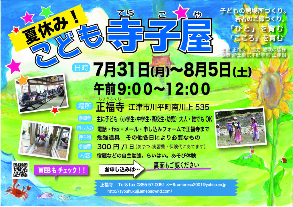 お申し込みはこちら⇒令和5年正福寺子ども寺子屋申し込みフォーム
