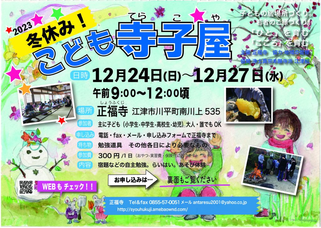 お申し込みはこちら⇒令和5年正福寺子ども寺子屋申し込みフォーム