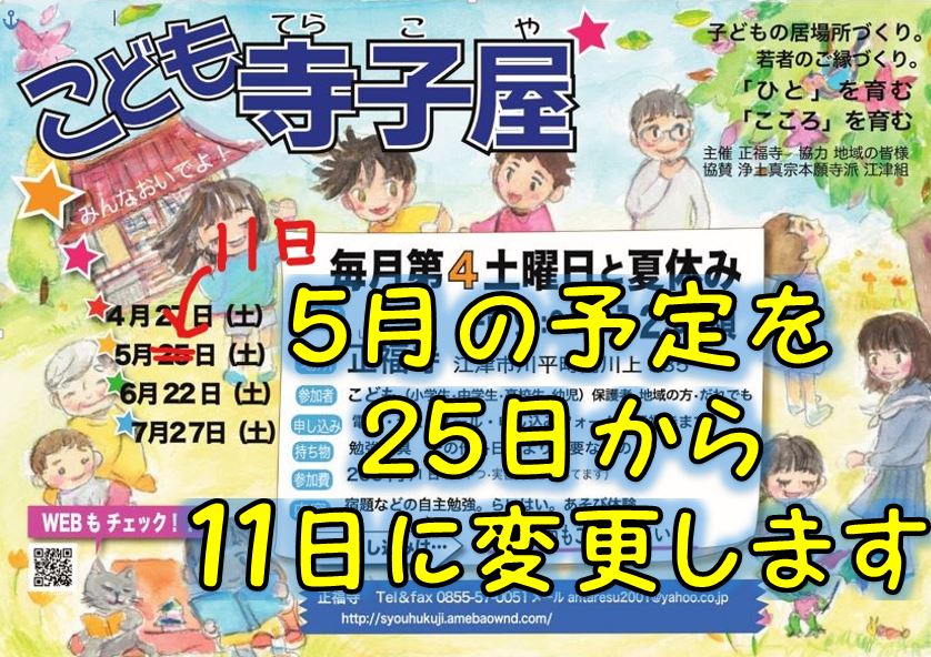 こども寺子屋の日程を先日発表させて頂きました。