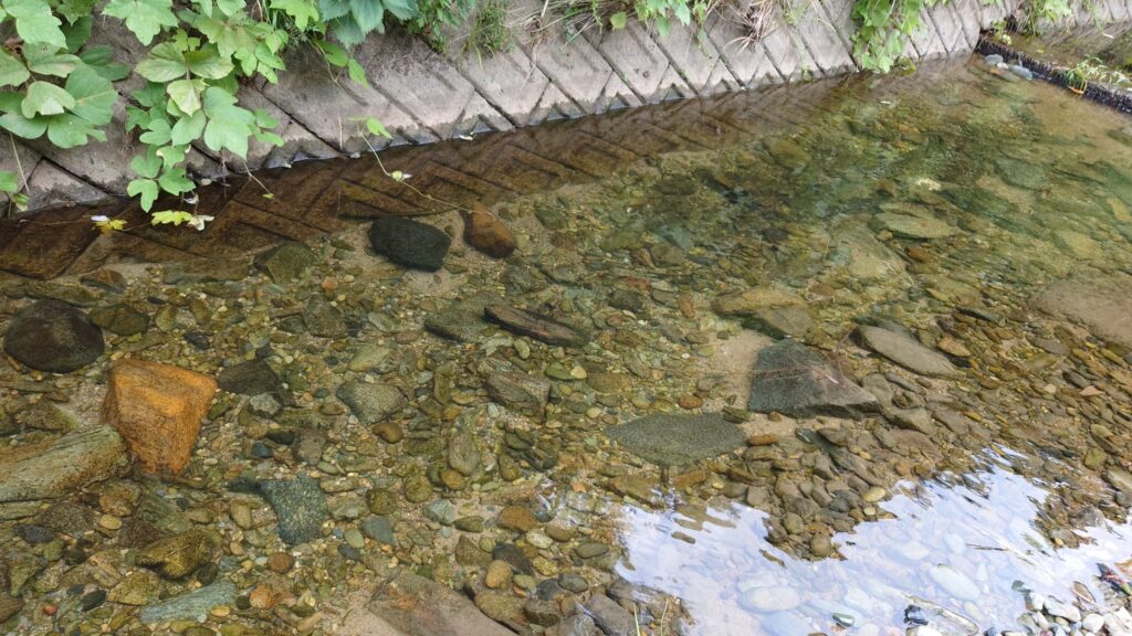 雨が降らず川の水が心配でしたが様子を見に行ったところ、流れや泳ぐほどの水量は無いですがしゃがんで浸かるくらいの水量はあるので実施します。