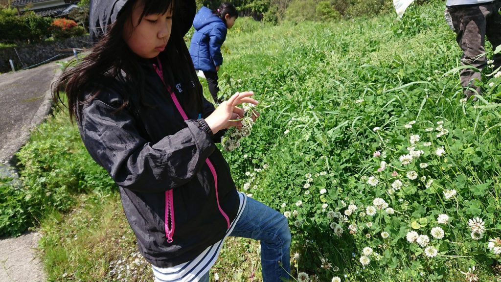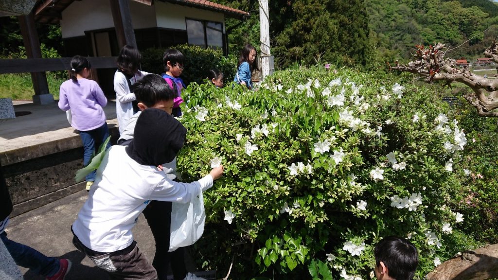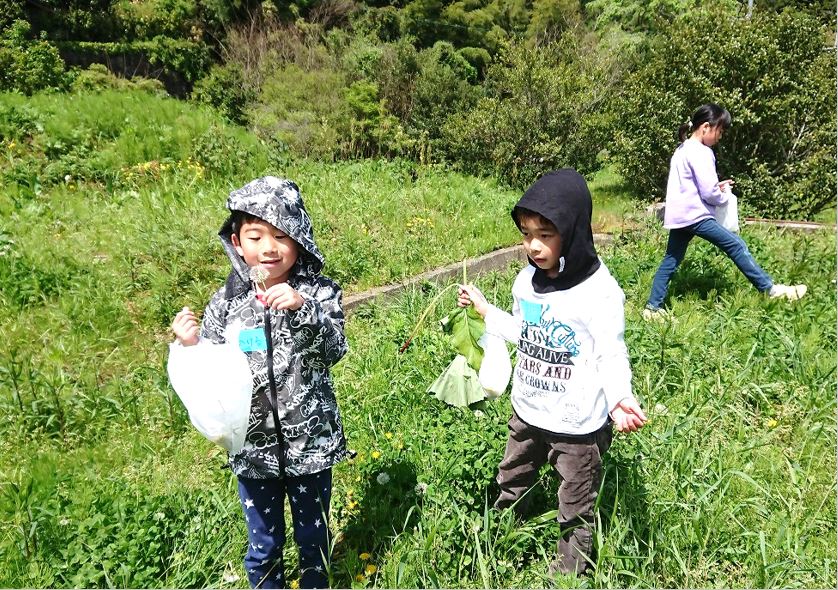 そして今日の遊び体験で使う花と葉っぱを集めに出かけました。