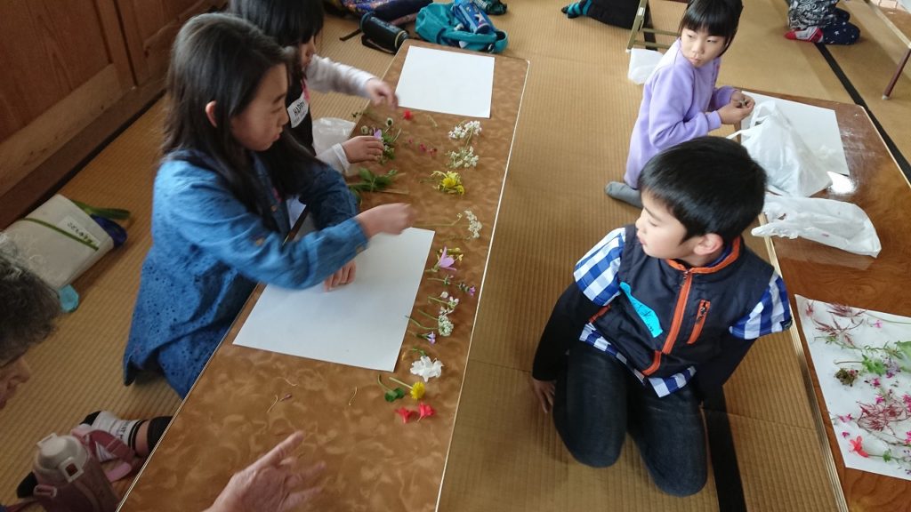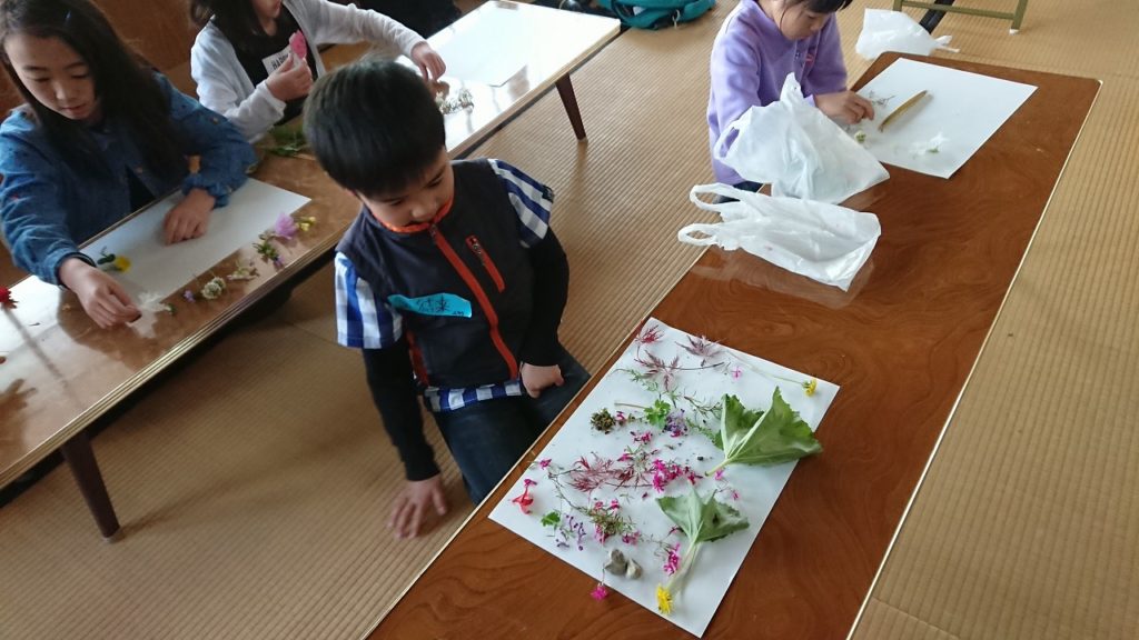 集めた花と葉っぱを持って帰って作品を作りました。
