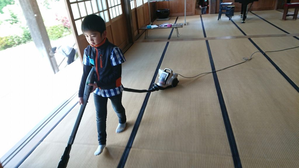 今日使わせてもらった本堂をしっかり綺麗にします。