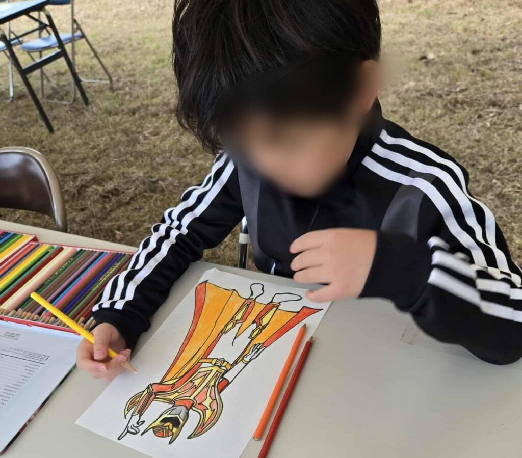 上手に塗り絵を塗ってくれて、いっぱい握手したり、いっぱい話したり、いっぱい写真撮ったり、いっぱい抱っこしたりとても楽しい時間でした。