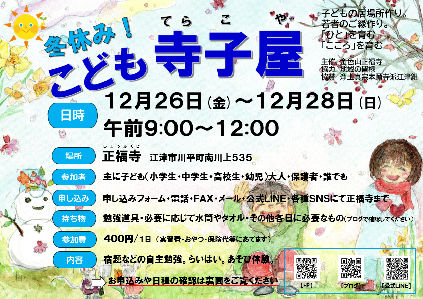 お申し込みはこちら⇒令和7年正福寺子ども寺子屋申し込みフォーム