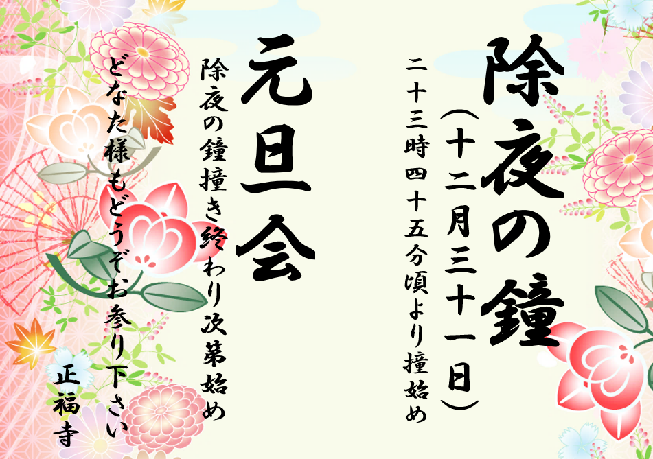 家でまったりと過ごす年越しもいいですが、お寺にお参りをして気持ちも新たに過ごす年越しもとてもいいものだと思いますよ。