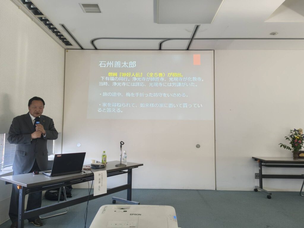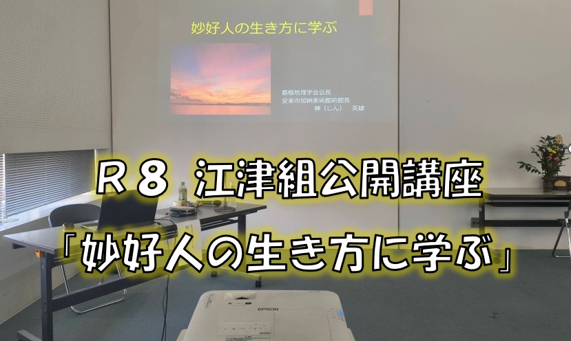 今年は島根県地理学会会長・安来市加納美術館前館長の神英雄(じんひでお)先生御講師の元、「妙好人の生き方に学ぶ」をテーマとした研修会に参加してきました。