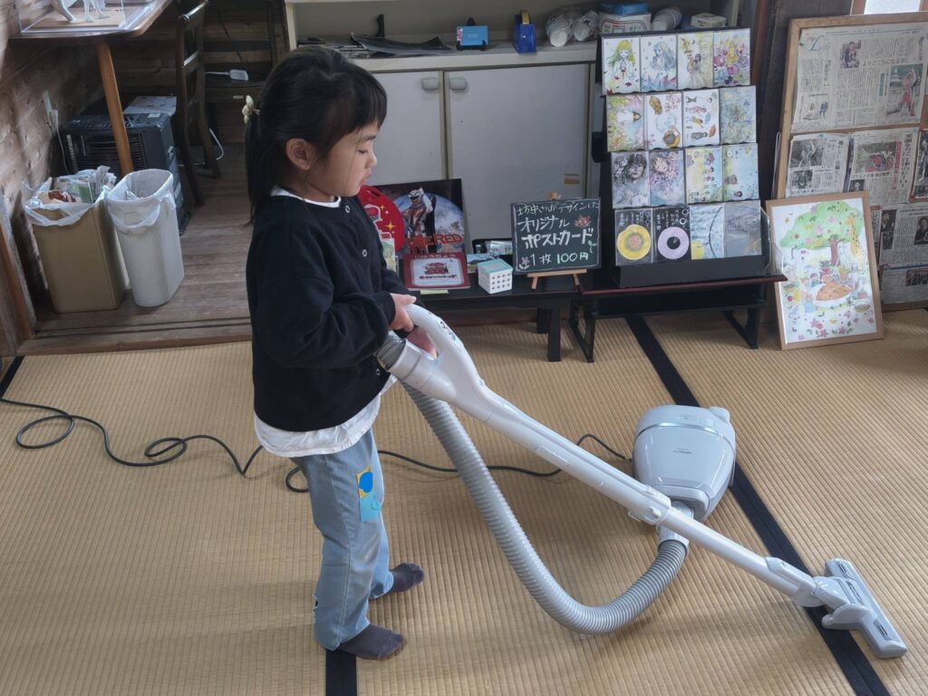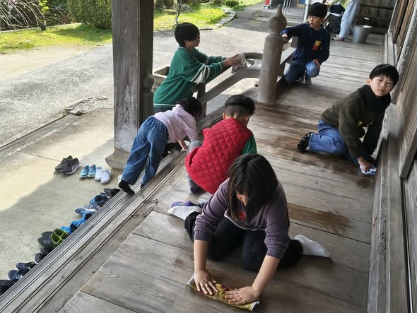 いつも通り最初にらいはいの歌で始まり、お話を聞き、お勉強をして、おやつを食べて、遊び体験をして、お掃除の奉仕作業それが1日の流れ。