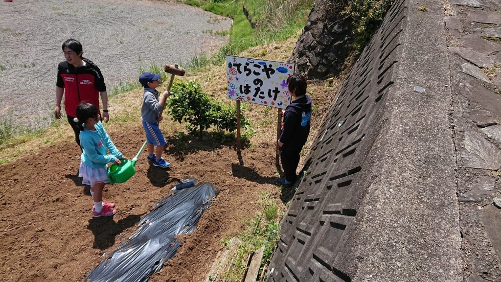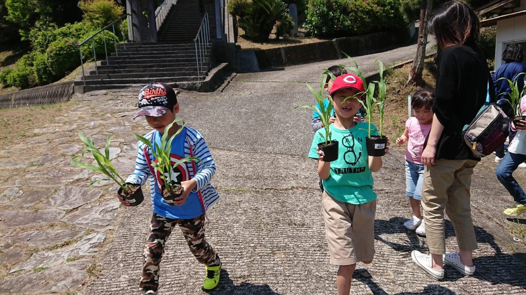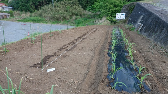 そしてトウモロコシやトマトやナスの苗、そして枝豆の種を撒きました。
