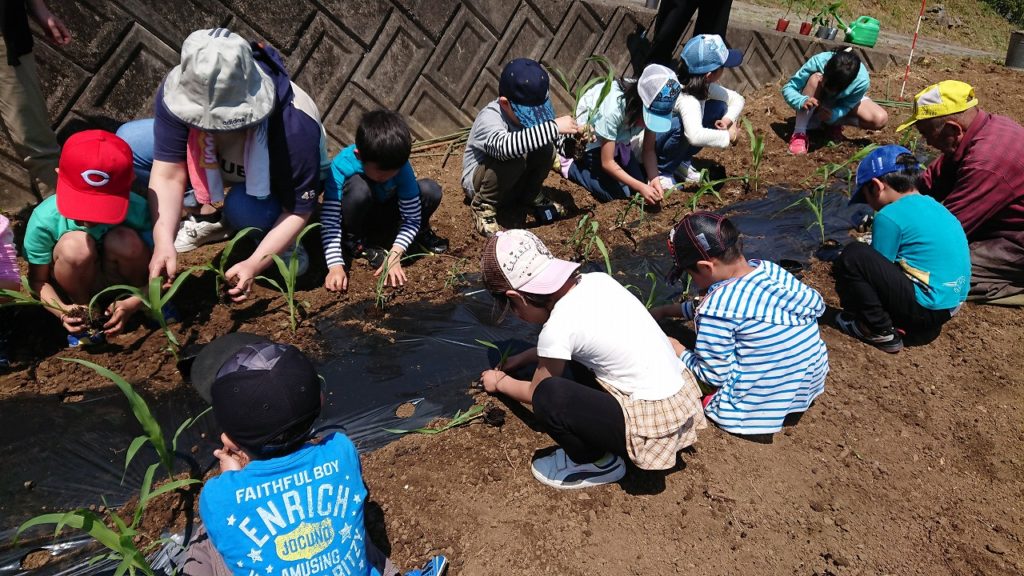 しっかりと手で土を掘って汚れてトウモロコシを植えたり、種を撒いたりしました。