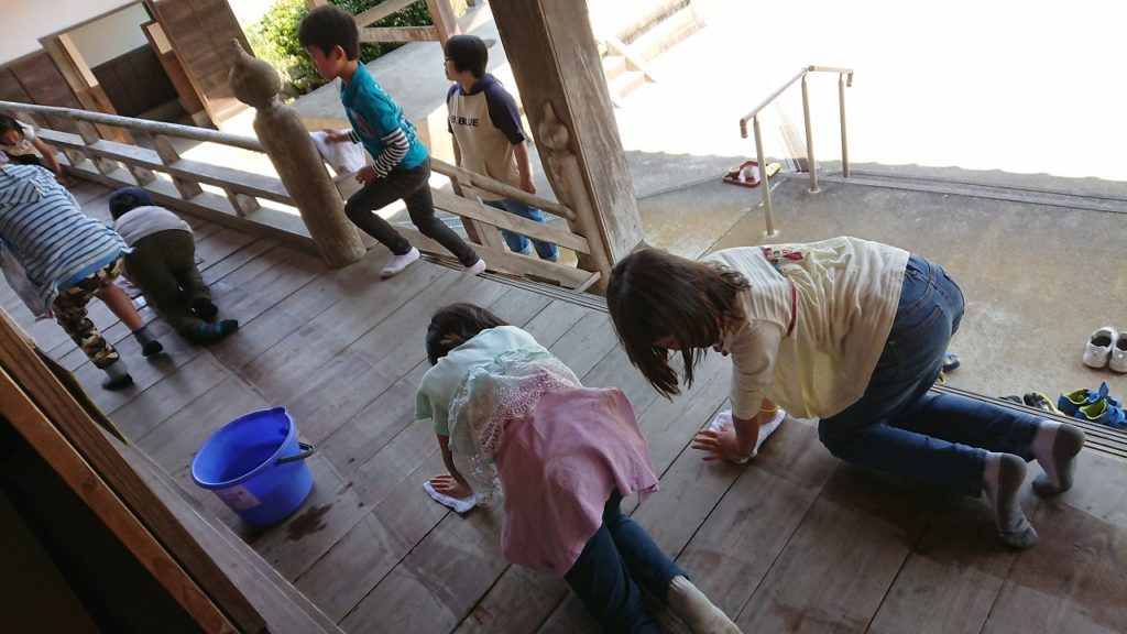 今日使わせてもらった本堂をしっかり綺麗にします。