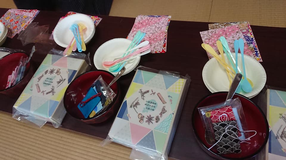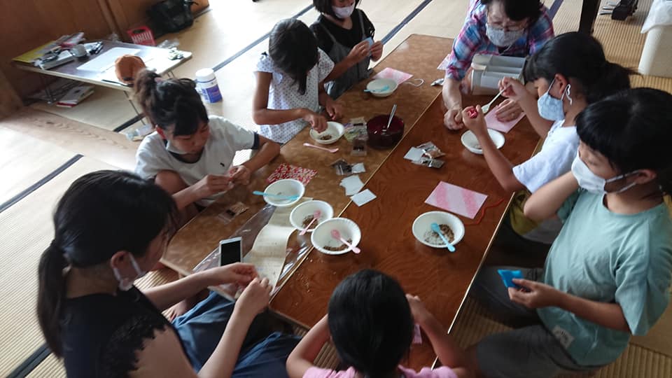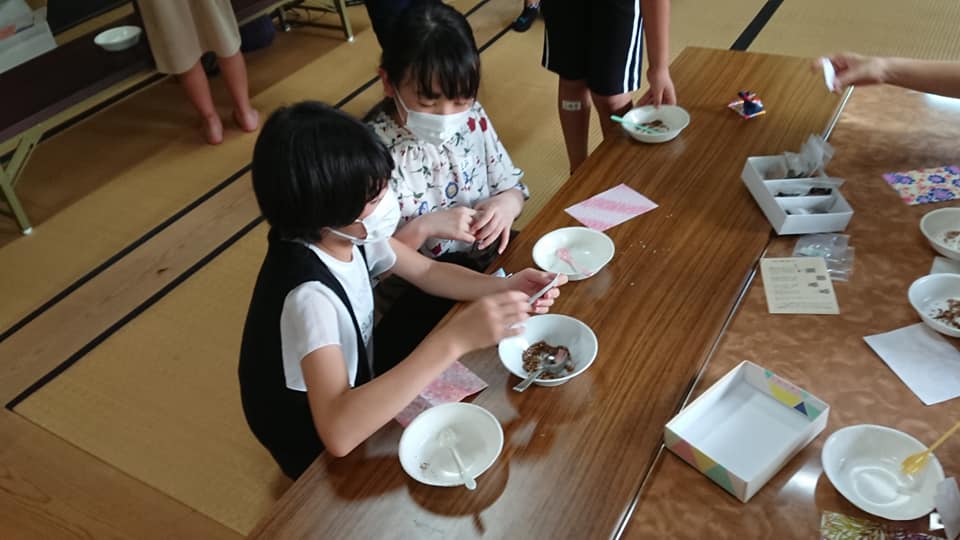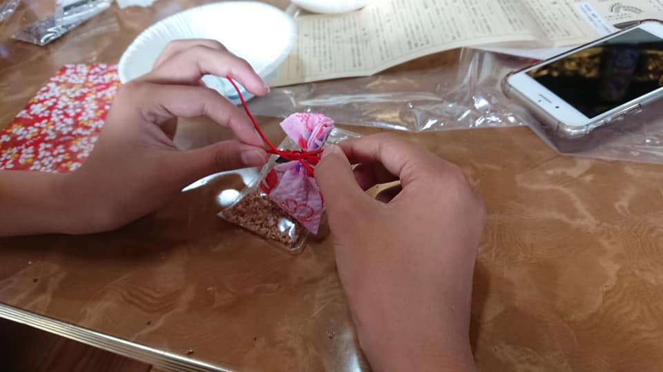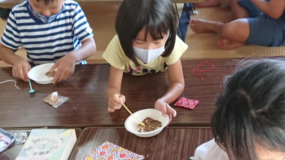 今日はお香を調合して匂袋を作る遊び体験ですが一番参加者が多いです。