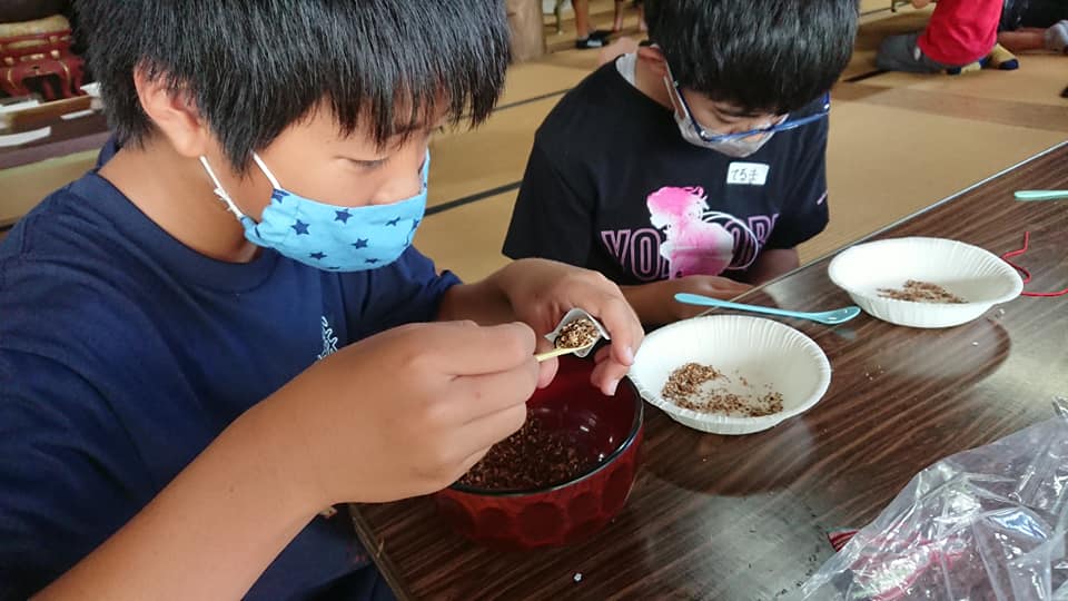 3日目の遊び体験、お香を調合して匂袋を作ろうの説明を聞いてスタートです。