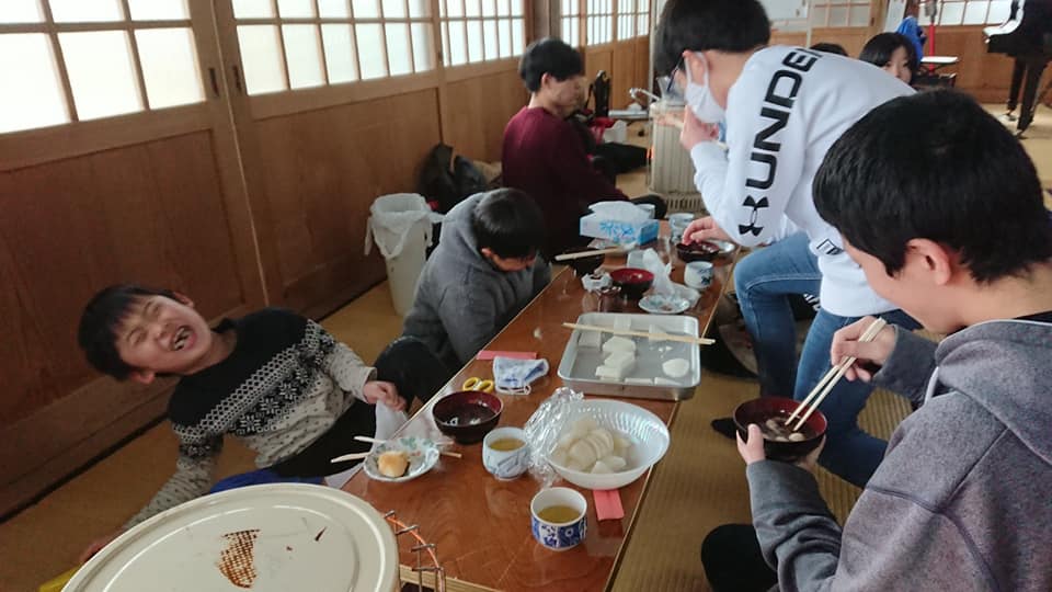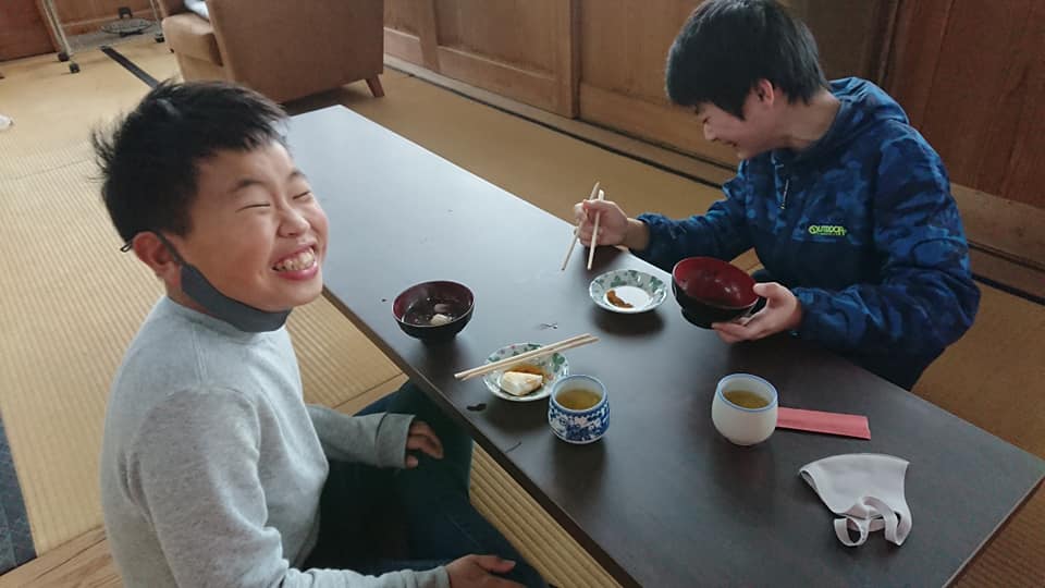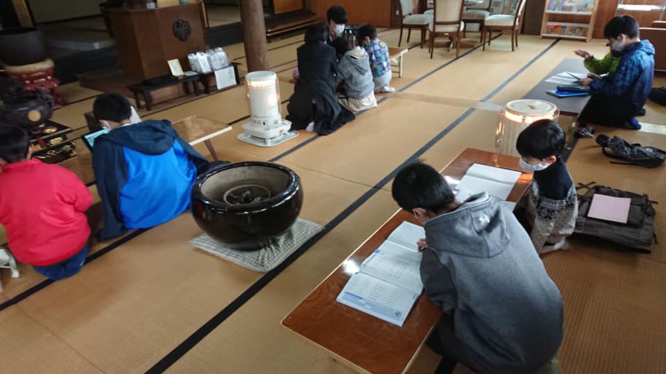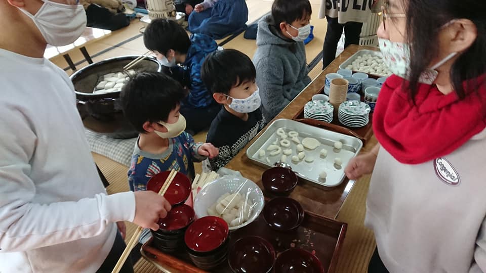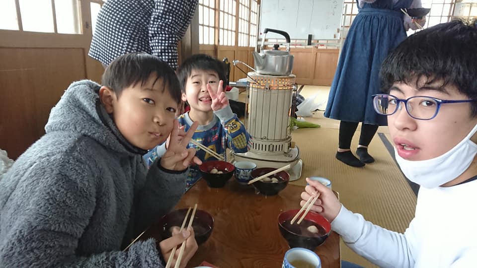 3日目の遊び体験は山奥のお寺へハイキングでした・・・が雪が降り正福寺からさらに山奥に行くのは安全性を考えると困難だと判断したため、お寺でぜんざいを作って食べように変更しました。