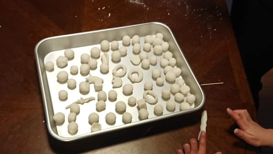 天気が悪いので当日キャンセルの子が多かったですが、それでも山登るつもりで来たガッツのある子どもたちも切り替えて丸じゃなく色んな形のお団子作って楽しんでしました(´▽`*)